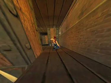 Nachtrag: Ich habe es. So muß Lara stehen und dann einfach nach vorne springen.,..
