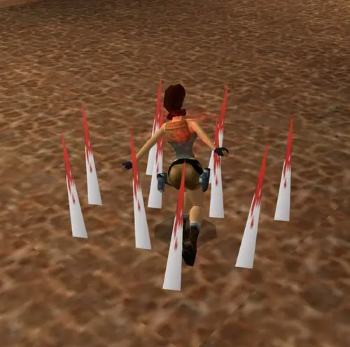 Ich würde sehr gerne wenn Lara in die Spikes fällt bzw tödlichen schaden erleitet, das Blut spritzt.
