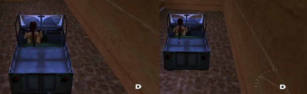 3.) Das D ist manchmal schon sichtbar, obwohl Lara gar kein Jeep fährt oder nicht eingestiegen ist. Hier hilft nur ein Scriptbefehl der TRNG Engine von AkyV, der dies ausblendet.