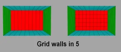 Möchte man z.B. bei einer Rampe die Wandunterteilungen parallel zum Boden oder der Decke haben. (um z.b. Cracks zu vermeiden), setzt man wie gewohnt "Grid walls in 3". Möchte man, dass die Wandunterteilungen weiterhin horizontal laufen sollen, kann man hier "Grid walls in 3 (squares)" oder besser "Grid walls in 5 (squares)" setzen.