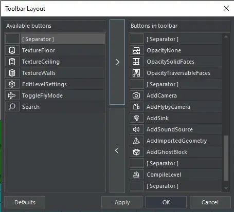 Zur Zeit kann man 6 weitere Buttons wie "Texture floor, Texture Ceiling usw." der Symbolleiste hinzufügen.