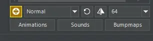 Hier finden wir das Texturenset welches wir aktuell geladen haben. Sollten wir mehrere Texturensets geladen haben, können wir mit dem weißen Pfeil die anderen Sets auswählen. Seit Version 1.2.8 oder 1.2.9 gibt es die Möglichkeit mit der Lupe rechts daneben nach einem Set zu suchen (Search for texture sets).
