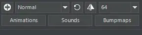 Beim Auswählen von einigen Buttons wie "doppelseitiger Textur" erscheint standardmäßig ein blauer Rahmen mit dunklem Hintergrund, wenn die Funktion ausgewählt ist. Dies sieht man manchmal sehr schlecht.