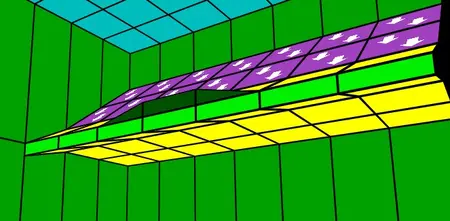 Nun gehen wir in den unteren Raum und machen das selbe an der Decke wie im oberen Raum am Boden. Hier senken wir die erste Square Reihe "vorne" ab. Also nicht das ganze Square, sondern eben schief.