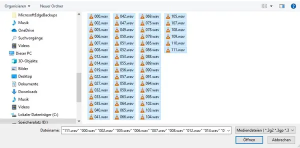 3. Dann könnt ihr alle .wav Dateien im "audio" Ordner gleichzeitig markieren.