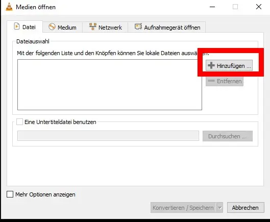 2. Unter Medien öffnen klickt ihr auf +Hinzufügen