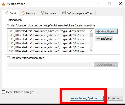 4. Dann, wenn alle hinzugefügt sind, auf Konvertieren/Speichern klicken.