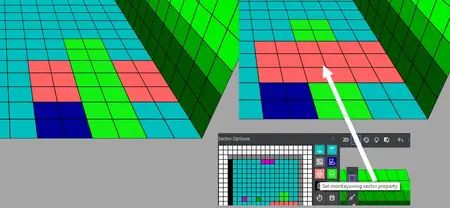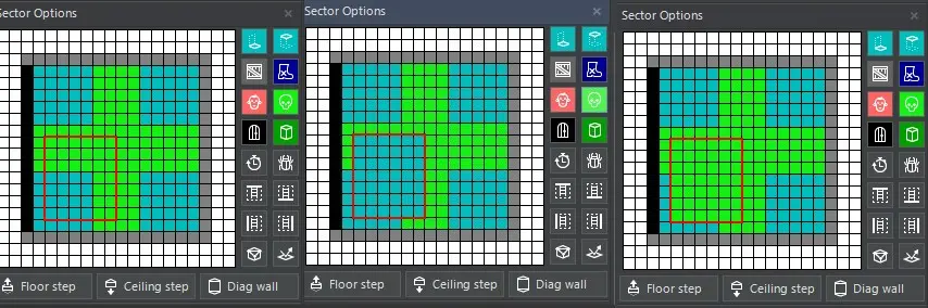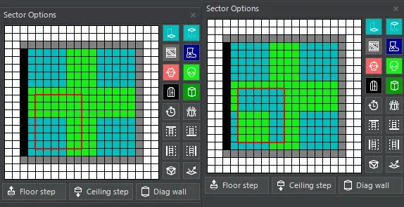 Setzt man hier einen Haken, kann man sich überlagernde Eigenschaften auf Squares wie z.B. "Box Sector", "Non-walkable floor", "Monkeyswing" und "Death Sector" wieder sichtbar machen, indem man unter "Room Options" auf die entsprechende Eigenschaft drüberfährt. Dadurch kann eine Eigenschaft, die unter einer anderen lag, wieder ausgewählt und bearbeitet werden.