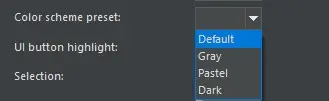 Hier kann man vorgefertige Themes finden wie z.B. Gray, Pastel, Dark, um die Farbeinstellungen wie Hintergrund, Floor, Trigger, Selection usw. zu ändern.