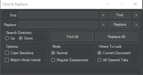 Edit > Find and replace