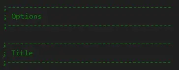 Dadurch kann man Zeilen oder Befehle durch einen Strichpunkt schnell auskommentieren- Dadurch werden sie nicht mehr als Befehl wahrgenommen, sondern dienen nur noch als Info zu gewissen Einträgen oder auch um Blöcke abzutrennen. (siehe Options, Title , Levels usw.)