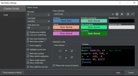Script Editor - Text Editor Settings