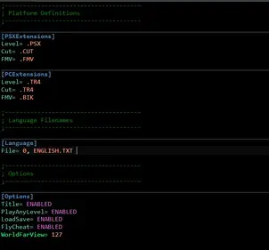 Beim Aufrufen des Script Editors ist immer zunächst nur die Script.txt geladen. Dort können wir Level hinzufügen und und diesen Attribute geben sowohl alte als auch die neuen der TRNG Engine. Rechts in der "File List" können wir aber z.B. auch die "English.txt" aufrufen, um Strings zu ändern oder neue [ExtraNG] Strings hinzuzufügen.