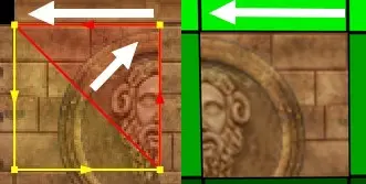 Beispiel für Auswahlflächen (untere Hälfte, linkes Dreieck, Auswahlfläche in der Mitte der Textur)