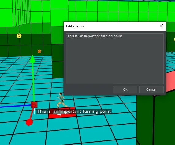 Klicken wir im Editor doppelt auf das Memo Objekt, können wir eine Notiz schreiben. Diese erscheint nachher im Level direkt zum Lesen.