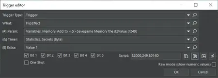 Anschließend müssen wir im TE / NGLE nur noch einen Trigger setzen, nämlich den Organizer (Inklusive ONE SHOT, damit man nicht öfter das Secret finden kann):