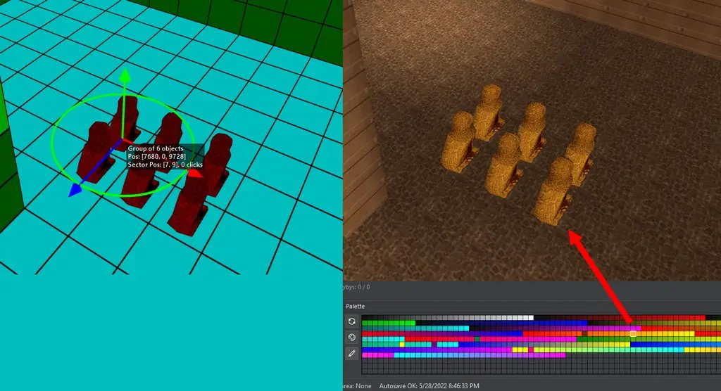 Haben wir eine Gruppe von Static Objekten ausgewählt, gehen wir in die Farbpalette und klicken auf eine entsprechende Farbe.