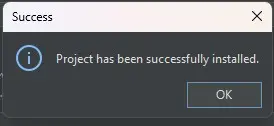 Nun klicken wir auf "Create" und TombIDE gibt nach der Installation hoffentlich eine Meldung, dass das Projekt erfolgreich installiert wurde.