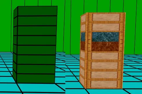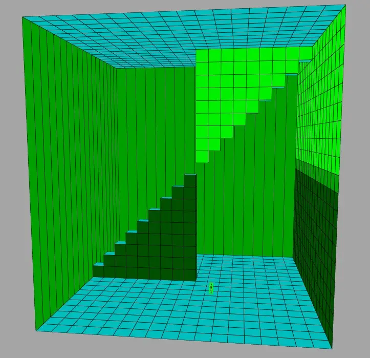 Man kann so 9 Unterteilungen von unten hochziehen und 9 Unterteilungen von oben runterziehen. Insgesamt erhält man so 19 Squares zum Texturieren in einem Raum der eine Höhe von 76 hat.